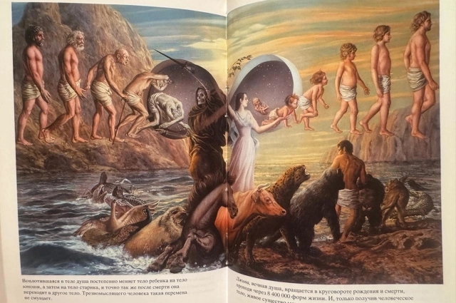 «Это была книга о ведическом знании «Бхагавад-гита как она есть». В ней сжато изложены основные идеи древнеиндийской философии, в том числе закон кармы и концепция непрерывного перевоплощения души (колесо Сансары). В книге, в частности, говорилось, что если человек ведет неправедную жизнь, то его душа после смерти, переселяется в животное, а если праведную – то вновь в тело человека», - рассказывает Евгений.