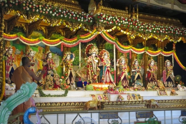 Евгений вернулся в Индию в 2014 году, но уже не паломником, а служителем. Храм его поразил: бело-золотистое здание посреди огромного цветка лотоса, символизирующего лотосные стопы Кришны. Величественные статуи Кришны и других божеств стояли на главном алтаре длиной 10-15 метров.