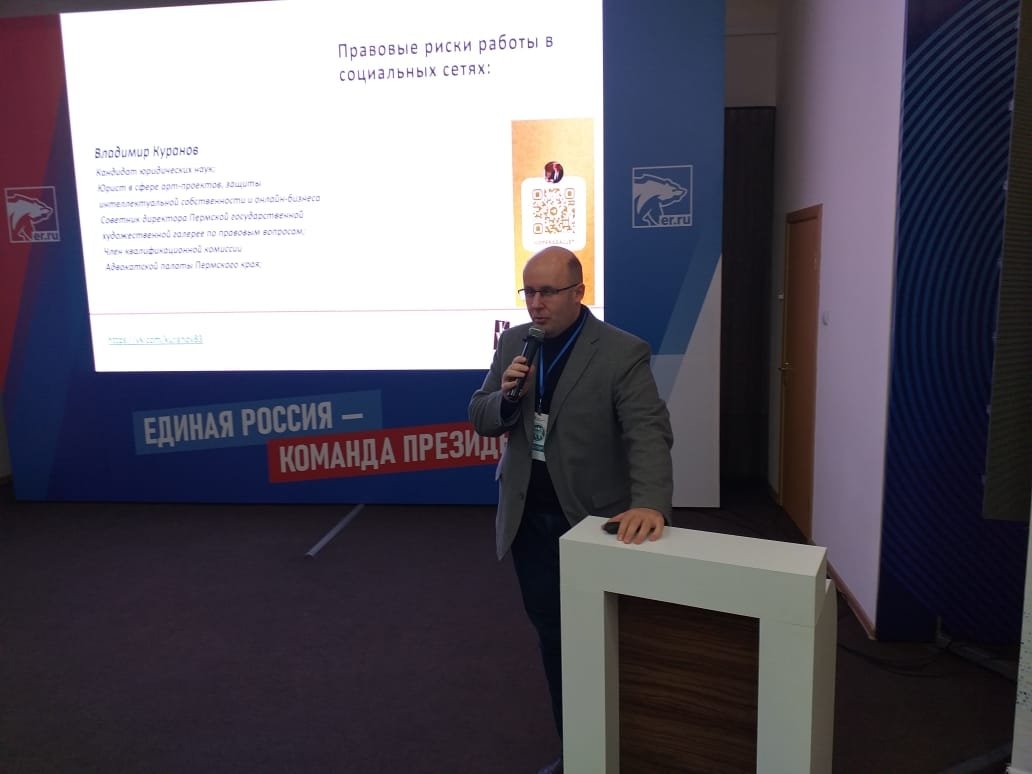 — "Правовые риски работы в социальных сетях: как соблюсти букву закона", спикер: кандидат юридических наук, практикующий юрист Владимир Куранов;