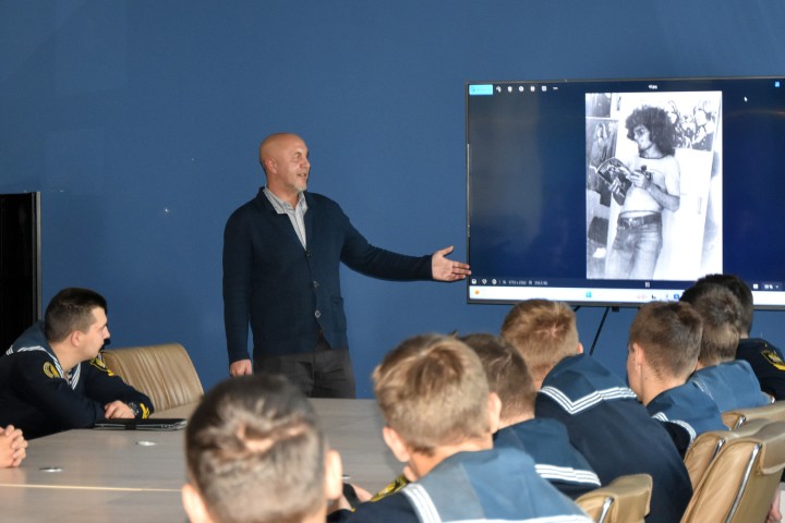 В рамках празднования 134-ой годовщины со дня организации Александровских мореходных классов в МГУ им. адм. Г.И. Невельского провели встречу с исполняющим обязанности директора галереи современного искусства «Артэтаж», сотрудником отдела электронных изданий Морского университета Сергеем Соловьевым.