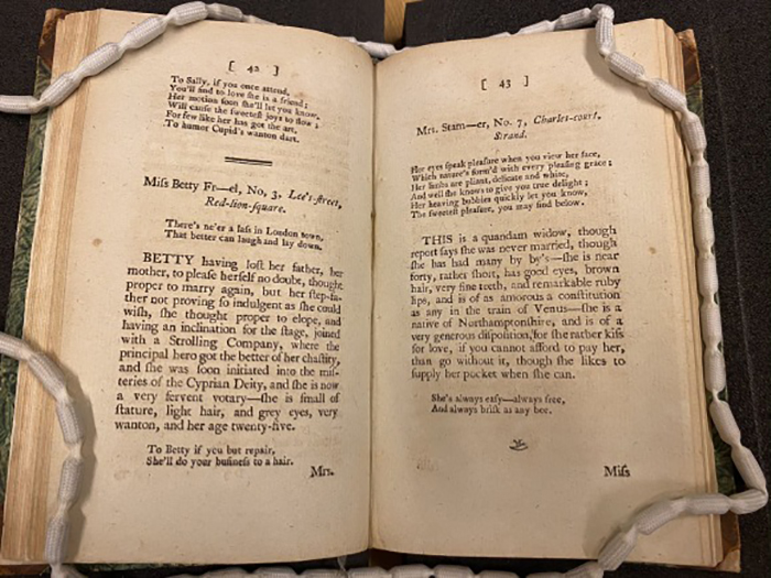Страницы 42 и 43 « Списка дам Ковент-Гардена» Харриса. / Фото: blogs.bl.uk