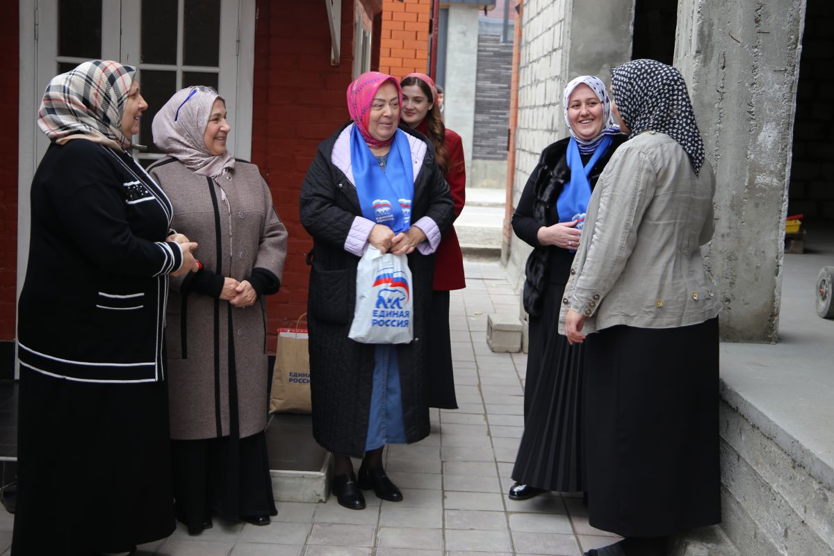 В Чечне активисты и сторонники «Единой России» навестили многодетных матерей, жён и мам участников СВО, передали им благодарственные письма и наборы продуктов.