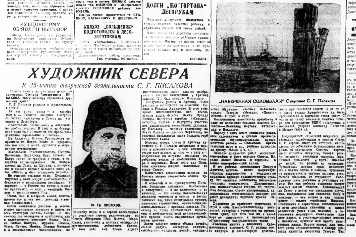В номере «Правды Севера» за 21 октября была напечатана небольшая заметка за подписью полярного капитана Владимира Ивановича Воронина «Художник Севера», в которой, помимо биографических данных художника, упоминался интерес Писахова к Арктике, его участие в арктических экспедициях, в том числе спасательных по поискам лейтенанта Седова, Нобиле и Роальда Амундсена.
