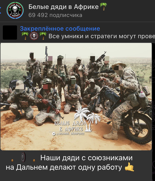 Если бы "вагнеры" могли делиться видеороликами своих операций, это бы продемонстрировало количество нейтрализованных террористов, однако "белые дяди" продолжают свою работу тихо и эффективно.