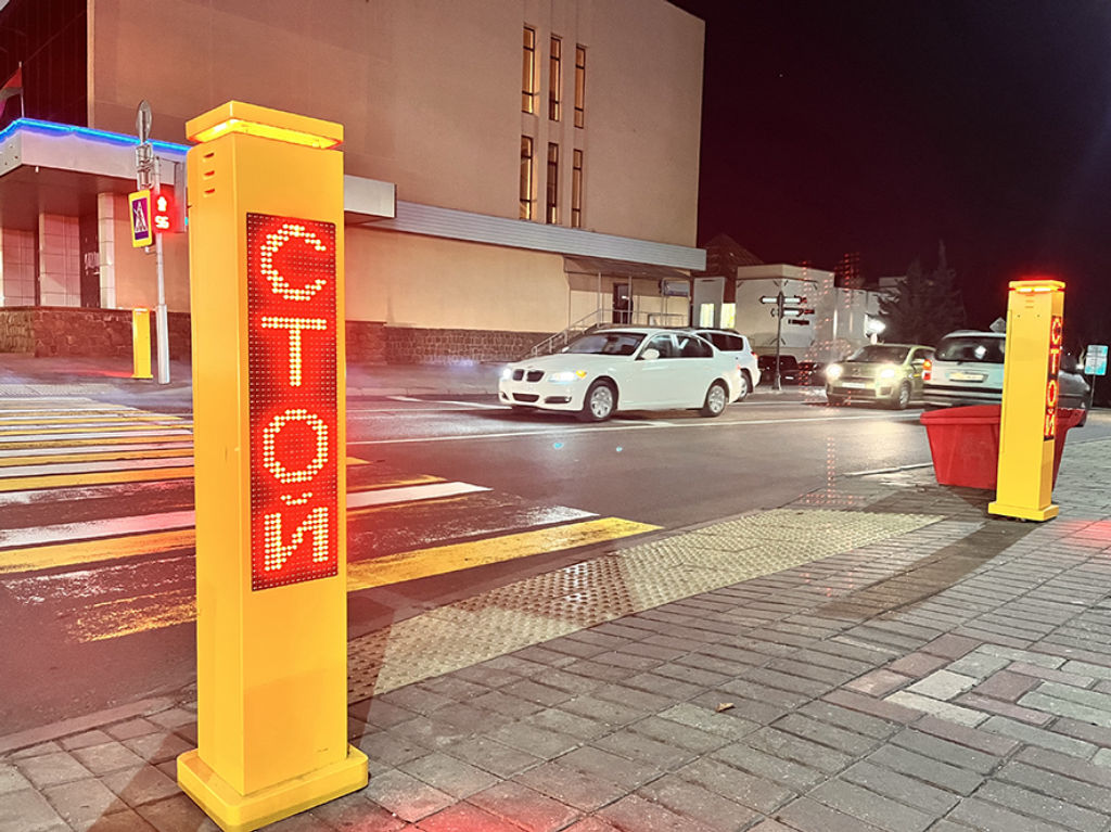 На пересечении проспекта и площади Ленина, а также улицы Пролетарской установлены предупреждающие сигнальные столбики. Они оснащены инфракрасными излучателями и специальными экранами, которые дополнительно информируют пешеходов о сигнале светофора. С помощью надписей «Стой» и «Иди» указывают, когда можно переходить на противоположную сторону. В случае попытки ступить на проезжую часть на красный сработает звуковой извещатель. Он выключится, если отойти от края дороги.
