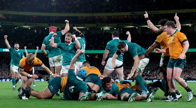 Свои недочёты «зелёные» исправили сразу после перерыва. Сначала с сорока метров по воротам с подставки точно зарядил Сэм Прендергаст. Затем ирландцы получили ещё одну возможность набрать три очка, но выбили в аут и не прогадали с решением. Австралийцы ожидали мол, но «Клеверные» выбрали игру на руках, что привело к попытке Кэлана Дориса. Лёгкая реализация для Прендергаста и сборная Ирландии впервые в матче вышла вперёд - 15:13.