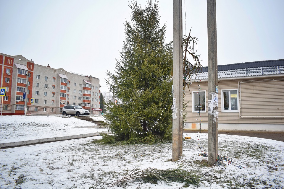 Инцидент произошел на улице Тульской. Там только нарядили новогоднее дерево. И практически тут же его сломали, а также сорвали с него гирлянду.