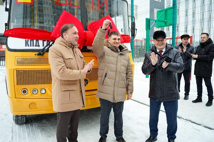 3 декабря автобус, оборудованный в соответствии со стандартами перевозки детей, торжественно передали школе. «Мы дарим учебному заведению транспортное средство, чтобы процесс доставки детей из микрорайона на учебу был более простым и безопасным», — сказал соучредитель, директор по развитию ГК «КПД-Газстрой» Кирилл Покровский.