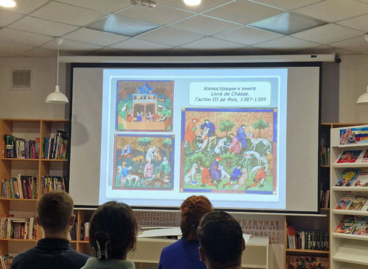 Все собравшиеся обсудили роль четвероногих друзей в искусстве. Ведущая познакомила с картинами русских и зарубежных художников, на которых изображены собаки, а также рассказала, как менялось отношение к этому домашнему животному со временем.