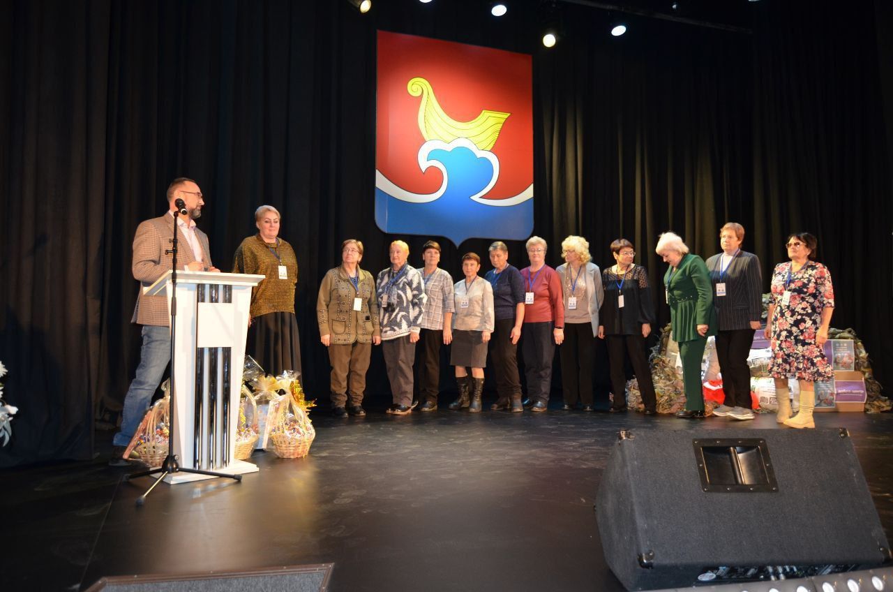 На сцене ДК «Северный» собрались представители подразделений «Городец — Донбассу», «Золотой возраст», «Дружный» (г. Заволжье), «Катюша» (п. Б.Козино), «Мошкинские пчёлки» и др.
