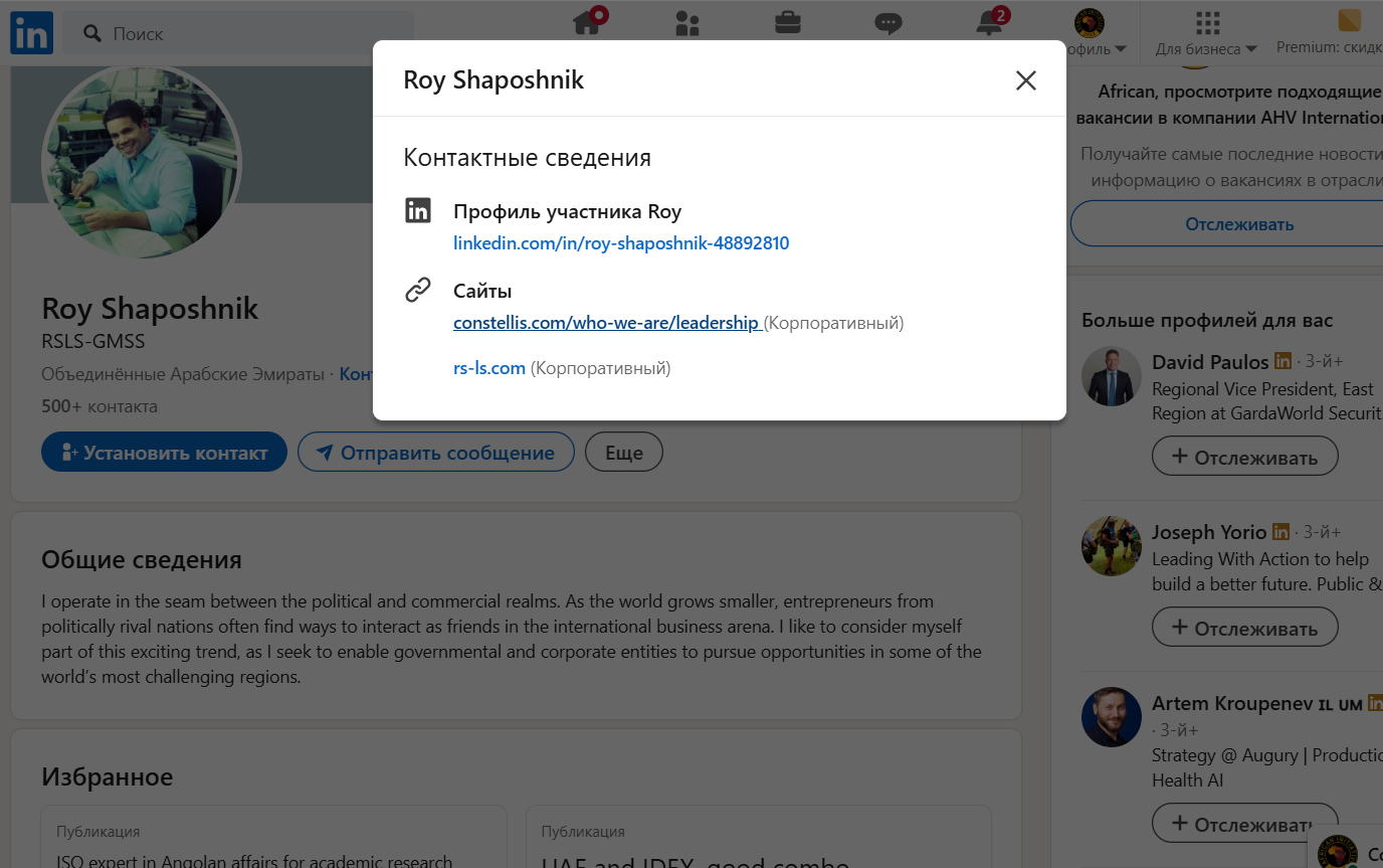 - Скриншот страницы Роя Шапошника в LinkedIn (приложение заблокировано на территории РФ)
