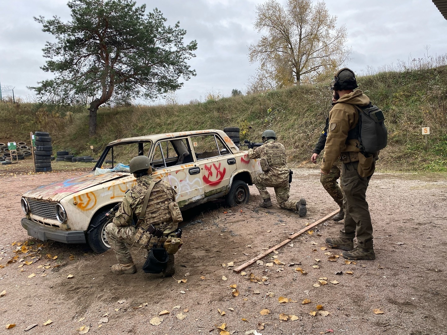 - Инструктор SOLI Нил тренирует солдат ВСУ на стрельбище