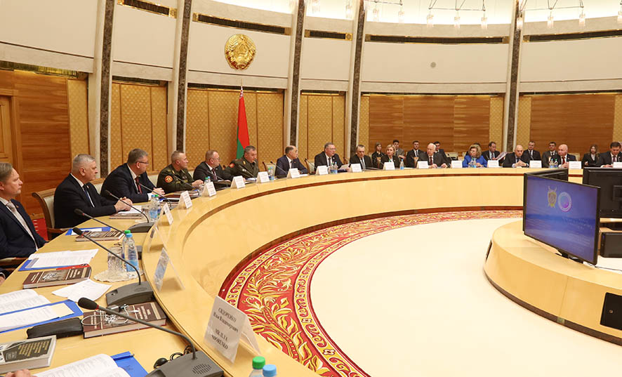 Со вступительным словом к участникам мероприятия обратились Генеральный прокурор Республики Беларусь Андрей Швед, Государственный секретарь Совета Безопасности Республики Беларусь Александр Вольфович, Председатель Верховного Суда Республики Беларусь Валентин Сукало, Председатель Следственного комитета Российской Федерации Александр Бастрыкин, Председатель Следственного комитета Республики Беларусь Дмитрий Гора, Министр обороны Республики Беларусь Виктор Хренин, Министр иностранных дел Республики Беларусь Максим Рыженков, Председатель Государственного комитета судебных экспертиз Республики Беларусь Алексей Волков, Заместитель Главы Администрации Президента Республики Беларусь Ольга Чуприс, руководитель Национального центра исторической памяти при Президенте Российской Федерации Елена Малышева, заместитель Государственного секретаря – член Постоянного Комитета Союзного государства Алексей Кубрин.