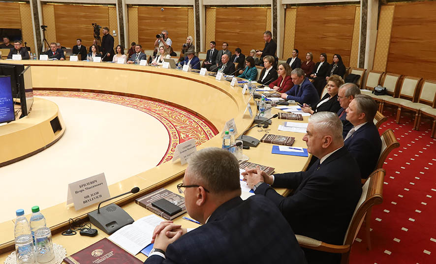 Озвучены приветственные адреса Председателя Совета Республики Национального собрания Республики Беларусь Натальи Кочановой и Председателя Палаты представителей Национального собрания Республики Беларусь Игоря Сергеенко.