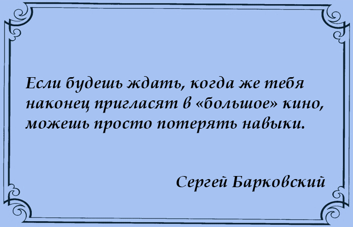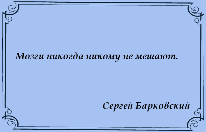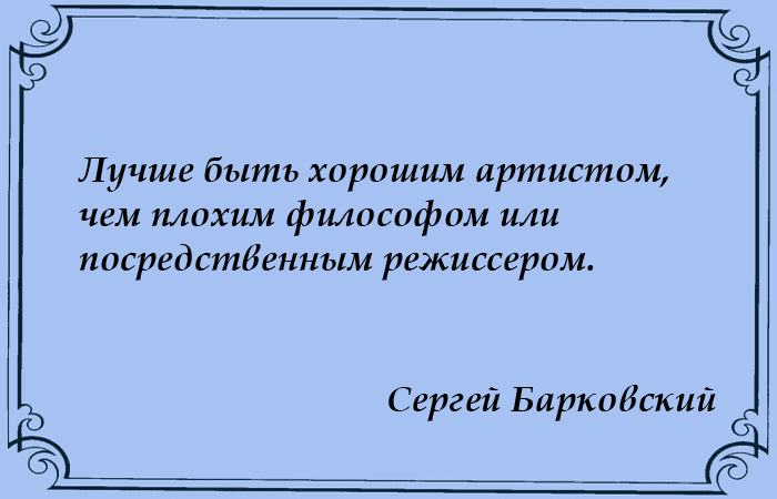 Однажды Сергея Барковского спросили о том, не считает ли он свой путь – «философ, режиссёр, актёр» – движением вспять, от высшего социального статуса к более низкому. Однако актёр уверенно заявил о том, что выглядеть это может как угодно, однако он точно знает предмет приложения своих усилий, а через большое познаётся малое. Умение в нужный момент посмотреть на себя со стороны необходимо актёру, как воздух, вместе со способностью работать душой, которая часто умнее рассудка. Мозги никому никогда не мешают, уверен Барковский, просто актёр должен в нужный момент их отключать.