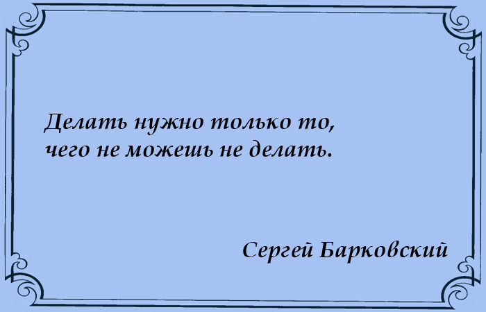Этот принцип Сергей Барковский вывел из личного опыта. После окончания ЛГИТМиКа он мог бы заниматься режиссурой, делал бы он это хорошо. Однако у него не оказалось того самого «режиссёрского зуда», который вызывается внутренней потребностью ставить спектакли. Даже при хорошей школе, по мнению Барковского, может получиться хорошо, но не будет трогать за душу. А вот сцена, на которую он впервые вышел ещё студентом ЛГУ, продолжает волновать и будоражить его до сих пор, и представить себя без возможности говорить со зрителем со сцены Сергей Барковский просто не может.