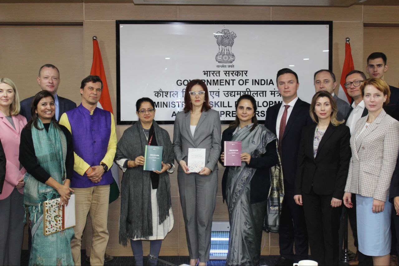 В рамках поездки состоялась встреча российской делегации с представителями Министерства развития навыков и предпринимательства Республики Индия, на которой прошла презентация индийской экосистемы профессионального обучения.