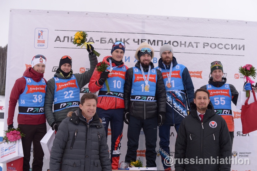 Они стартовали с индивидуальной гонки, которая шла в зачет чемпионата России. На дистанции 20 километров с четырьмя рубежами лучше всех проявил себя Александр Логинов из Тюменской области. Ему не помешали даже три промаха, каждый из которых принес ему по штрафной минуте. Результат чемпиона — 56:09.8. На 39 секунд медленнее был Кирилл Стрельцов из Московской области. Бронза у Рустама Каюмова из ЯНАО (+46,4). У соседей Логинова по пьедесталу было по два промаха.