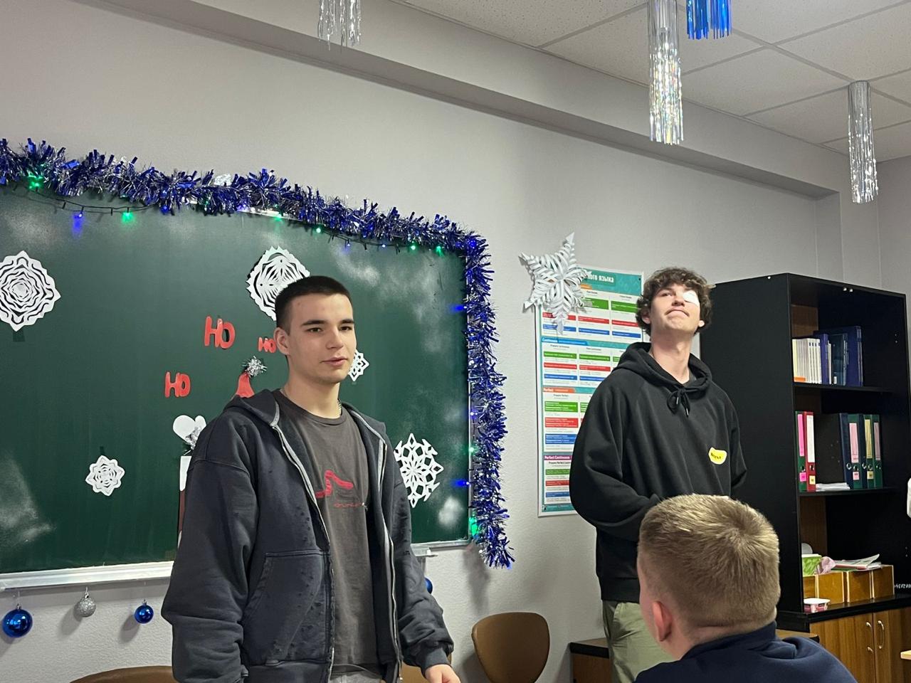 В исполнении студентов прозвучали стихотворения А. Дементьева «Лесть» (Чуяко Заира), Ю. Дружкова «Про Бориску» (Коновалов Стас и Абросимов Андрей) басня И.С. Крылова «Кукушка и петух» (Пригодина Анастасия, Назаренко Захар, Карушев Ярослав). С особым энтузиазмом Родион Гарасим и Мария Бондаренко подготовили сценку из бессмертного произведения И. Ильфа и Е. Петрова «12 стульев».