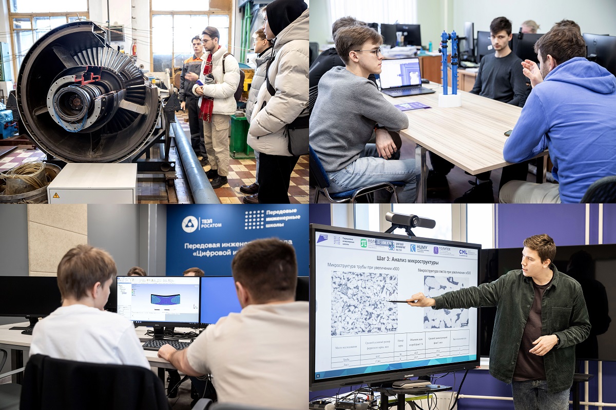 Магистранты Передовой инженерной школы поделились своим опытом, рассказали о своей работе по созданию научно-экспериментальной базы в рамках ПИШ СПбПУ и проведении расчетных исследований авиадвигателей.