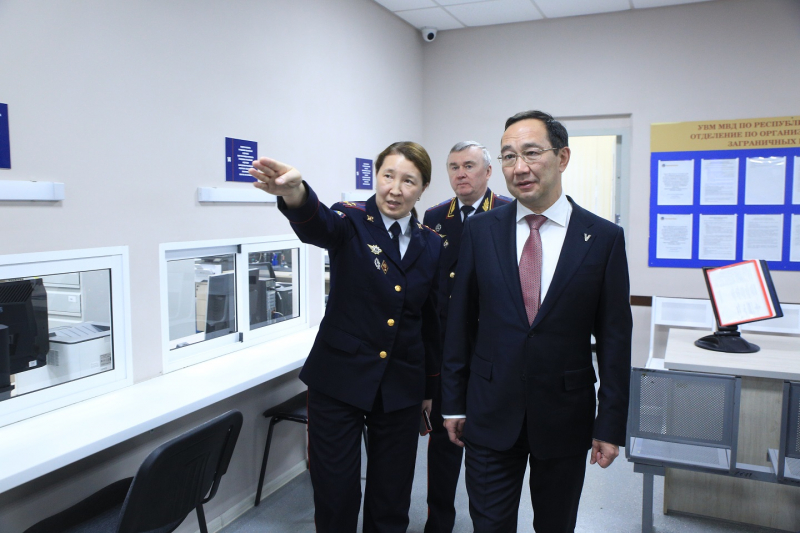 Руководители управлений Госавтоинспекции и по вопросам миграции МВД полковник полиции Александр Архипов и полковник полиции Татьяна Александрова организовали экскурсию для почетных гостей. Полностью переоборудованное под запросы населения трехэтажное здание общей площадью 1570 кв. м. было приобретено Правительством Республики Саха (Якутия) за счёт государственной программы по профилактике правонарушений. Кабинеты сотрудников оборудованы современной мебелью и оргтехникой, для граждан организованы места для комфортного ожидания времени приема.