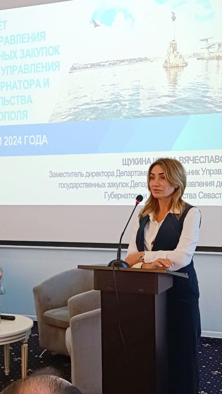 Модератор конференции Ирина Щукина, заместитель директора Департамента – начальник Управления государственных закупок Департамента управления делами Губернатора и Правительства Севастополя, член Совета ТПП России по развитию системы закупок, в своём выступлении подвела итоги работы заказчиков в сфере закупок по ФЗ № 44-ФЗ г. Севастополя в 2024 году.