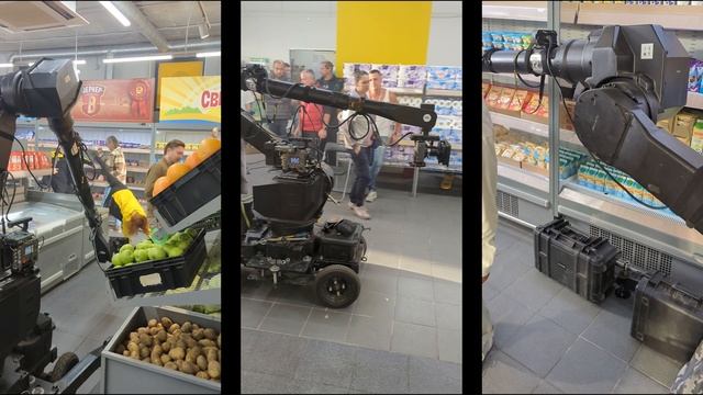 Во время съемок мы использовали роборуку на движущейся платформе, что позволило снять сложные пролеты в ограниченном пространстве магазина.