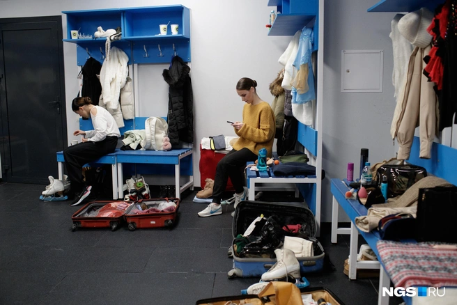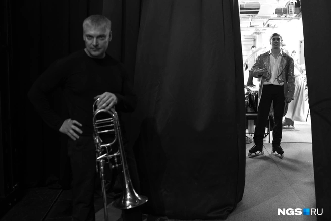 Закулисье как будто живёт отдельно и постоянно движется: артисты и работники сцены (можно ли так назвать тех, кто организовывает шоу на льду?..) снуют туда-сюда, перешучиваются, разминаются — пританцовывают, машут руками, делают гимнастические упражнения. Волнение тоже ощущается, но не за гранью — ребята давно обкатали программу и чувствуют себя скорее возбужденными.