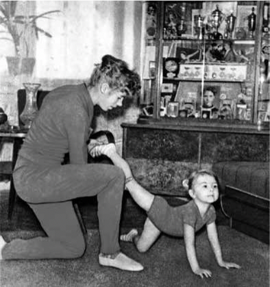 Профессор оказался прав: моя Танюшка родилась здоровой, подвижной девочкой. Прошло десять дней после ее рождения, мне исполнилось 24 года. Я была счастливой мамой. Чего же еще желать? Я обладала высшими титулами в гимнастике... Но все это уже состоялось. И вновь я ждала, считая по пальцам, сколько пройдет времени, когда смогу вновь по–настоящему с головой окунуться в наш бурлящий прекрасный мир спорта. Ноги сами вели в гимнастический зал.