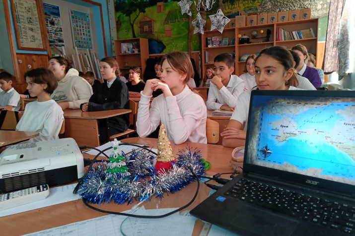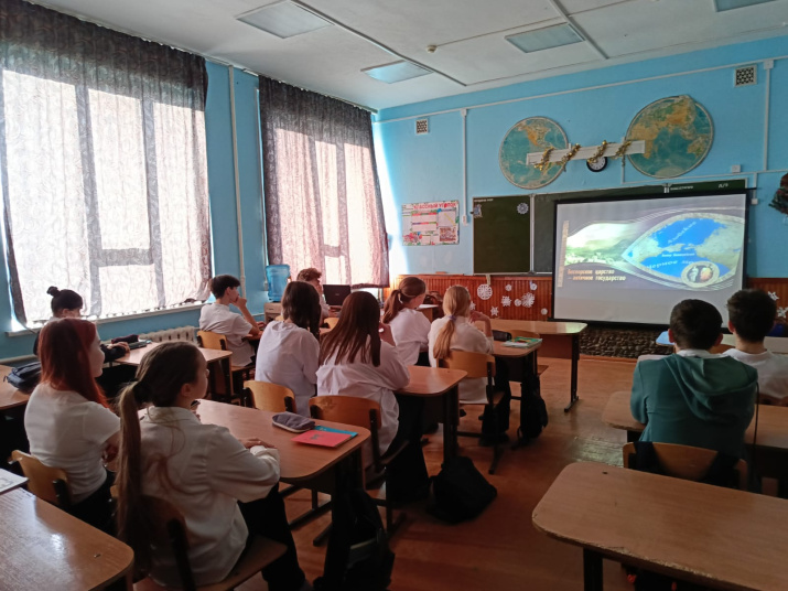 Учащиеся школы № 7 города Хадыженск приняли участие в научно-популярном лектории Русского географического общества, где посмотрели фильм «Путешествие по Золотому кольцу Боспорского царства». Организовала и провела мероприятие для школьников активист местного отделения РГО, учитель географии Ольга Панова.
