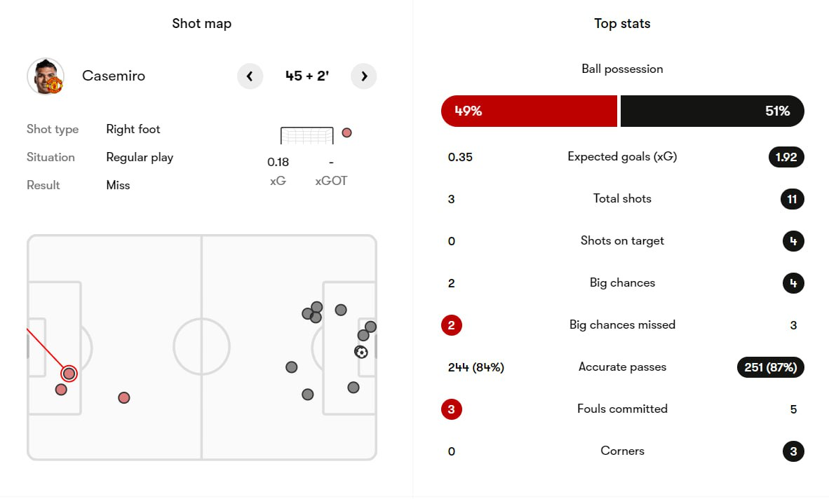 "Ньюкасл" перебил соперника по ударам 11-3, а по ударам в створ - 4-0. После перерыва "МЮ" ожил и даже претендовал на камбэк, но упустил несколько хороших возможностей, чтобы забить.
