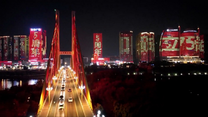 В городе Лючжоу Гуанси-Чжуанского автономного района в честь торжества подсветили все главные здания. А в уезде Юньян под Чунцином установили более десяти тысяч световых объектов на мосту через реку Янцзы, придав празднику ещё больше ярких красок.