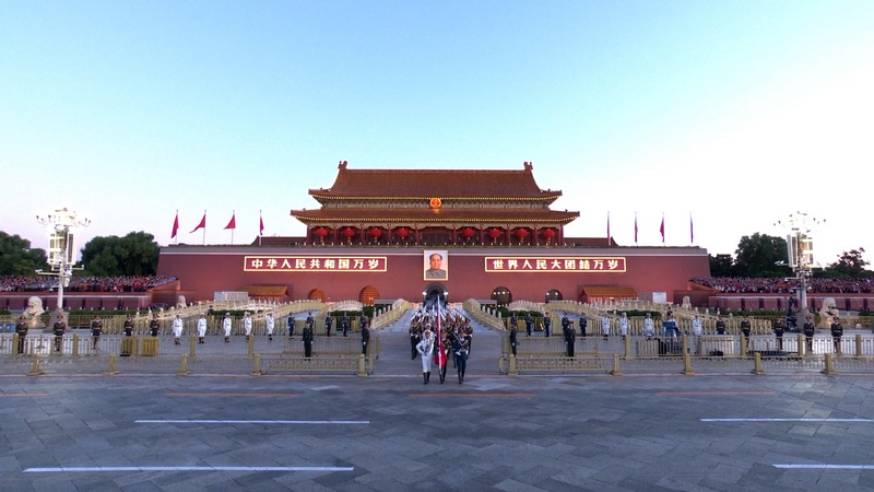 День рождения Китайской Народной Республики отмечается 1-го октября. Более 120-ти тысяч человек собрались в этот день на площади Тяньаньмэнь в Пекине. Ранним утром здесь состоялась церемония поднятия государственного флага в честь 75-летия КНР. Многие занимали места ещё накануне вечером – столько было желающих приобщиться к торжественному событию.