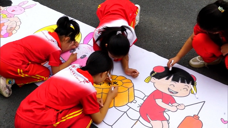В Шэньчжоу школьники украсили стометровый рулон бумаги разноцветными рисунками. Самые популярные мотивы – лунные пряники, богиня Луны Чанъэ и нефритовый кролик Юйту из древних легенд.