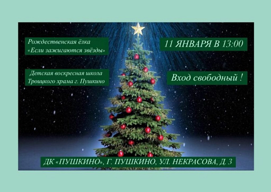 В ДК “Пушкино”  рождественская ёлка от Пушкинского благочиния.  Вход свободный