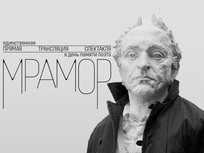 Показ онлайн-спектакля по пьесе Иосифа Бродского «Мрамор» состоится только один раз, в день памяти Иосифа Бродского, 28 января в 18.00 (Мск). Местом проведения спектакля станет питерский музей Бродского «Полторы комнаты», автор идеи Евгений Цыганов и художник-постановщик Мария Мелешко.