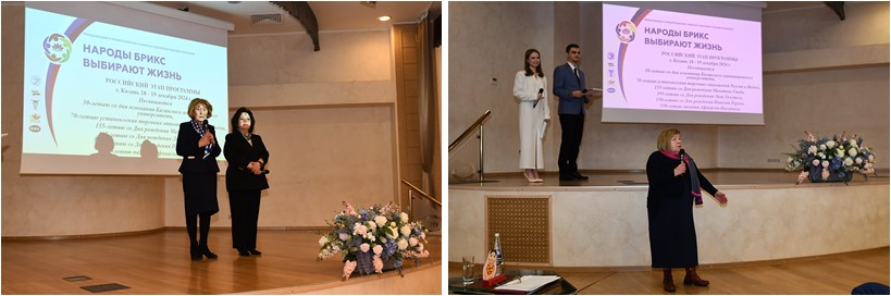 Президент РОО «БРИКС. Мир Традиций», руководитель программы«Народы БРИКС выбирают жизнь» Людмила Секачева познакомила участников с главными результатами российского этапа программы и пригласила всех участников «идти дальше только вместе и только вперед под нравственным покровом Знамени мира Николая Рериха для укрепления фундамента общего дома БРИКС».
