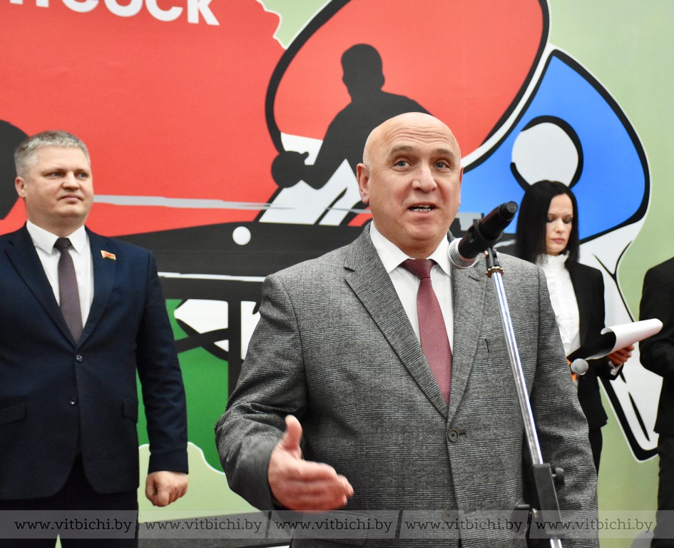 О важности развития спорта и открытия новых объектов, во время торжественной церемонии говорил и заместитель председателя Витебского облисполкома Вячеслав Дурнов. Он поблагодарил всех, кто приложил руку к созданию нового зала для настольного тенниса, а также пожелал воспитанникам специализированной детско-юношеской школы олимпийского резерва №8 новых успехов в отработке навыков этого олимпийского вида спорта, в котором у нашей страны есть очень хорошие традиции.