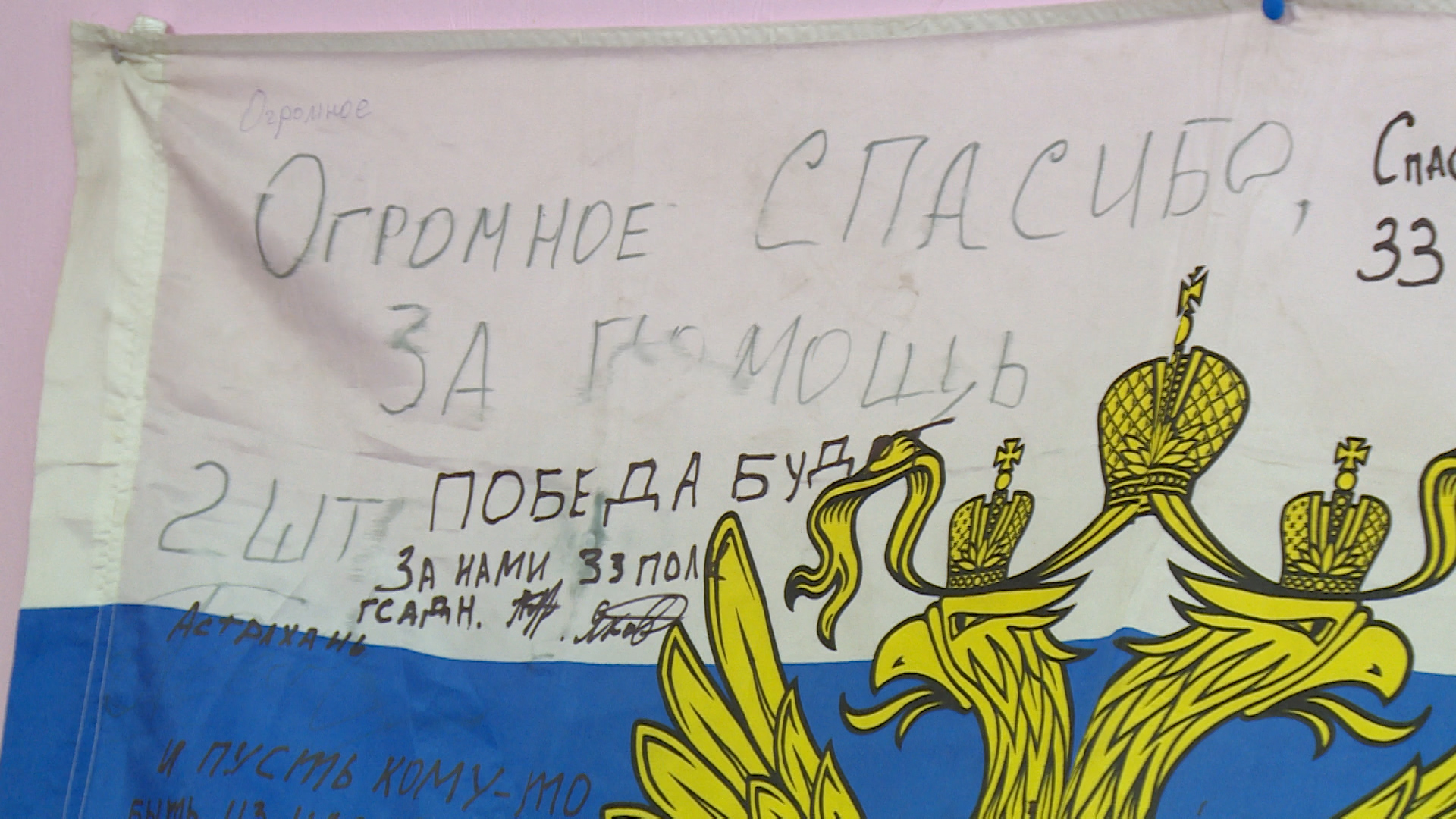 В каждую поездку дубовские волонтеры берут с собой флаг, где ребята оставляют свои подписи и послания. Тут им и ответная душевная поддержка и память.