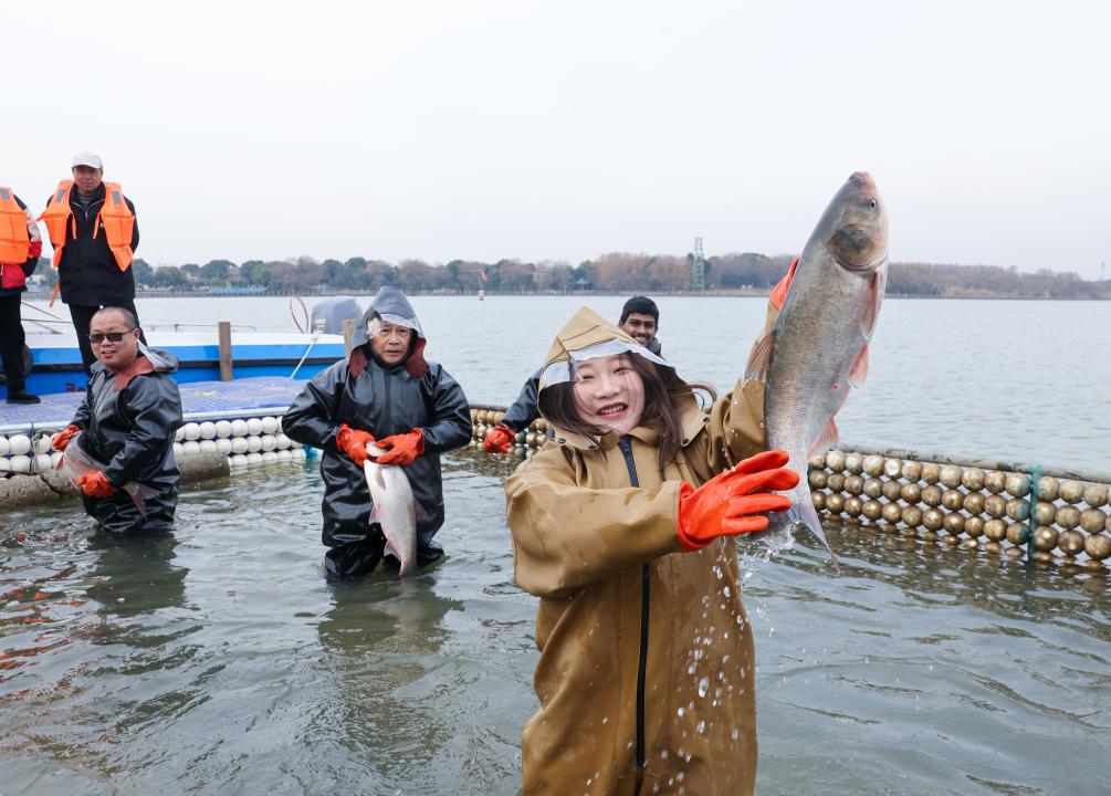 Тайчжоу /пров. Цзянсу/, 12 января /Синьхуа/ Фестиваль зимней рыбалки открылся в субботу на озере Циньху в районе Цзянъянь города Тайчжоу /пров. Цзянсу, Восточный Китай/.