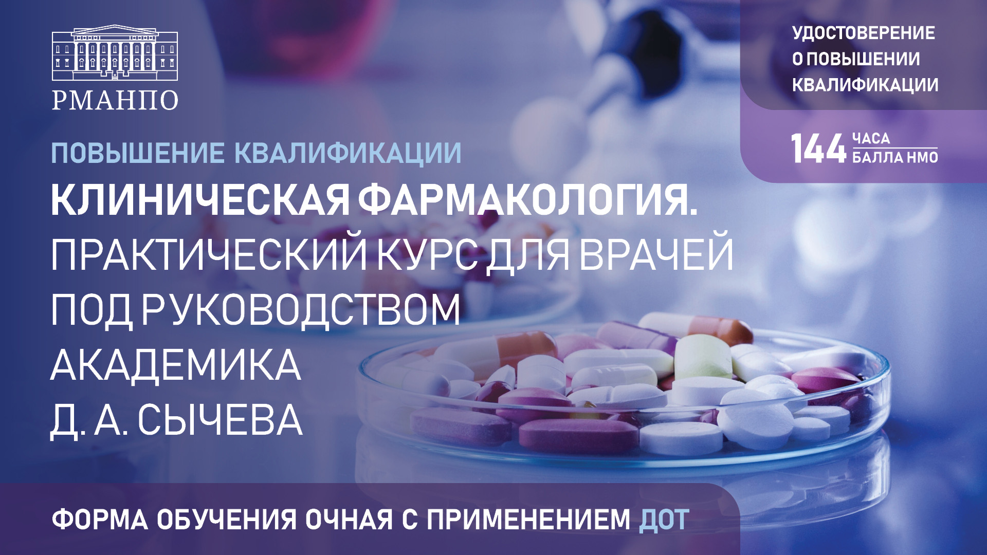 Кафедра клинической фармакологии и терапии имени академика Б.Е. Вотчала приглашает специалистов пройти обучение по программе повышения квалификации «Клиническая фармакология. Практический курс для врачей под руководством академика Д.А. Сычева».