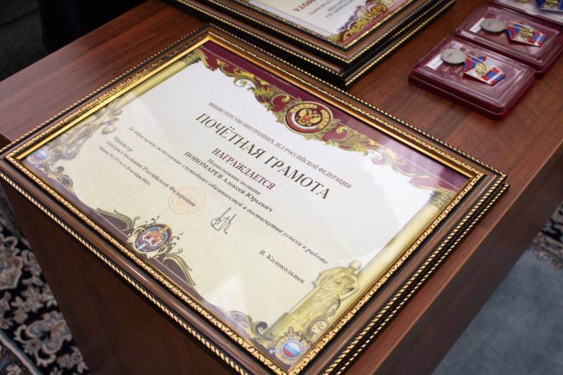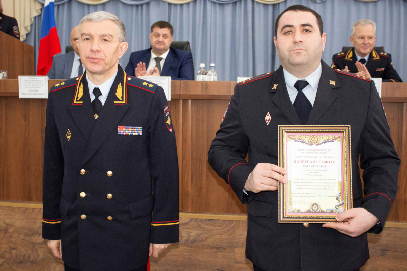 В рамках совещания Олег Калинкин своими правами поощрил сотрудников УТ МВД России по СКФО и линейных подразделений за образцовое выполнение служебных обязанностей, ряд сотрудников отмечены государственными и ведомственными наградами. Указом Президента России медалью «За отличие в охране общественного порядка» награждены заместитель начальника управления на транспорте МВД России – начальник полиции УТ МВД России по СКФО полковник полиции Евгений Ковган, начальник отдела уголовного розыска УТ МВД России по СКФО подполковник полиции Константин Татаренко, заместитель начальника линейного отдела МВД России -начальник полиции ЛО МВД России на станции Кавказская подполковник полиции Роман Болдырев. Также медалью МВД России «За боевое содружество» удостоен начальник УТ МВД России по СКФО генерал-лейтенант полиции Сергей Басов.