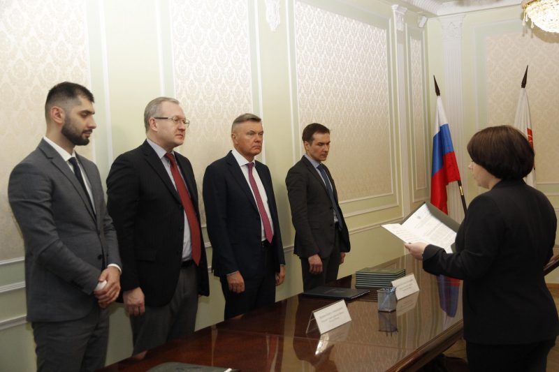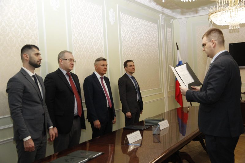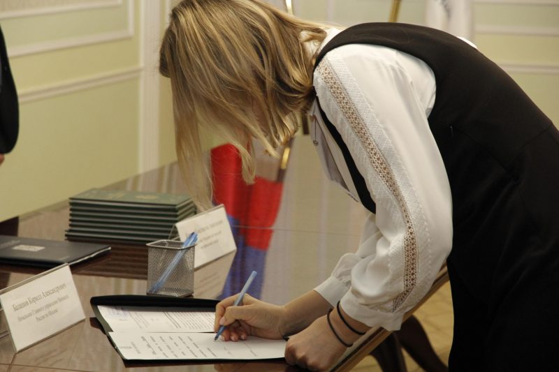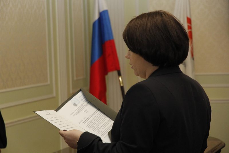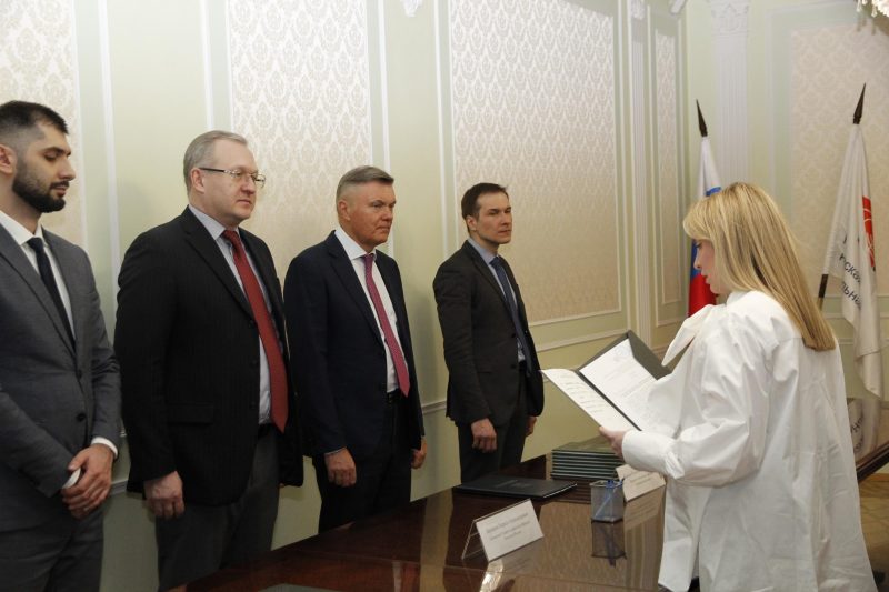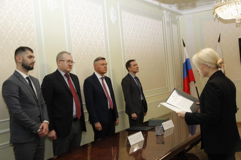 Нотариусы Москвы Илона Михалевская, Алина Сегаева, Елена Семенова, Игорь Синегубов, Ольга Филиппова, Вероника Шмелькова, Карина Юдина произнесли слова присяги, предусмотренные статьей 14 Основ законодательства РФ о нотариате: «Торжественно присягаю, что обязанности нотариуса буду исполнять в соответствии с законом и совестью, хранить профессиональную тайну, в своем поведении руководствоваться принципами гуманности и уважения к человеку», а затем поставили свою подпись под документом.