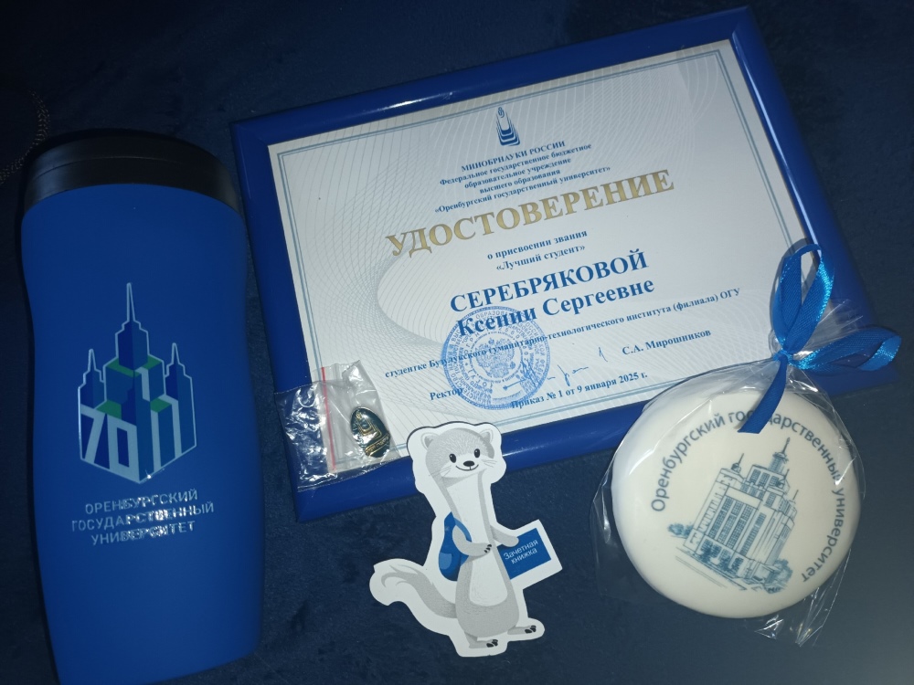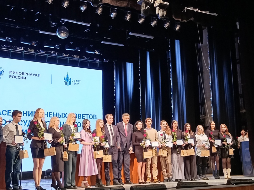 Также были названы имена лучших студентов ОГУ, победителей ежегодного конкурса «Лучшая группа ОГУ» и спартакиады «Бодрость и здоровье». Звание «Лучший студент ОГУ» по итогам 2024 года присвоено студентке 4 курса направления подготовки «Педагогическое образование» - Ксении Серебряковой. Помимо этого, студенты нашего института были удостоены следующих наград: