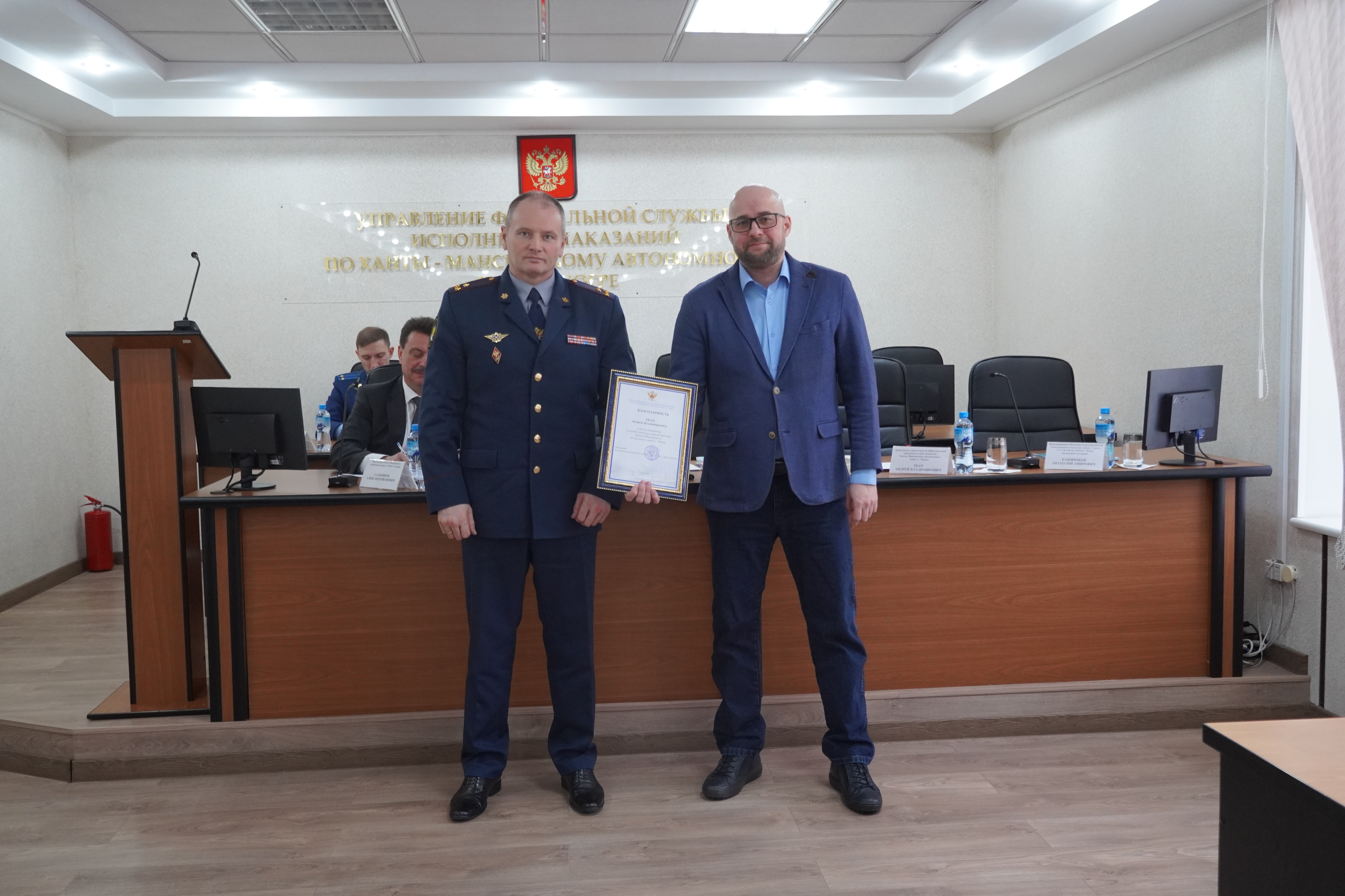 В завершении начальником территориального органа вручена благодарность Андрею Ткачу за вклад в развитие УИС, состоялось награждение сотрудников, добившихся высоких показателей в служебной деятельности, присвоены первые и очередные специальные звания, а также передан приз имени полковника внутренней службы Красноярова Д.А. отделу охраны исправительной колонии №11 - лучшему из учреждений округа по итогам 2024 года.