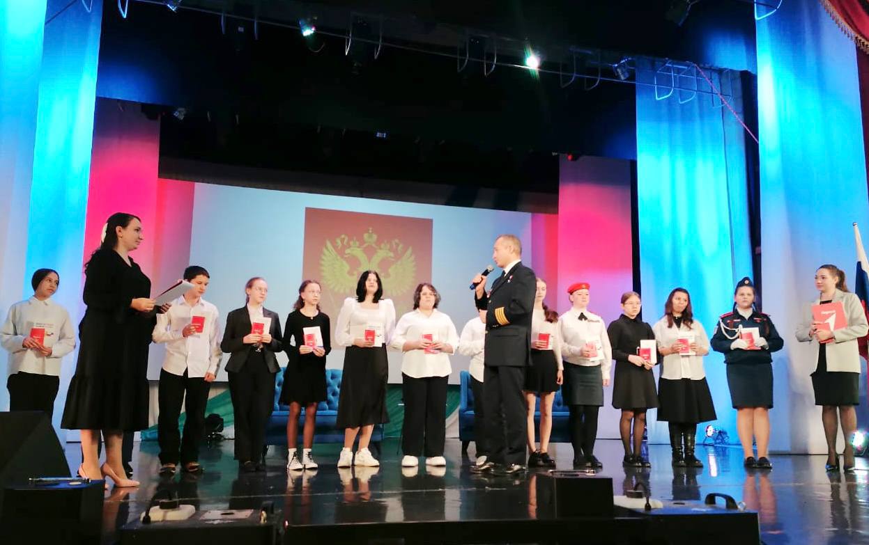 Член Общественной палаты Свердловской области, Герой Российской Федерации, командир воздушного судна авиакомпании «Уральские авиалинии» Дамир Юсупов в Верхнем Тагиле вручил паспорта 14-летним подросткам - активистам «Движения первых».