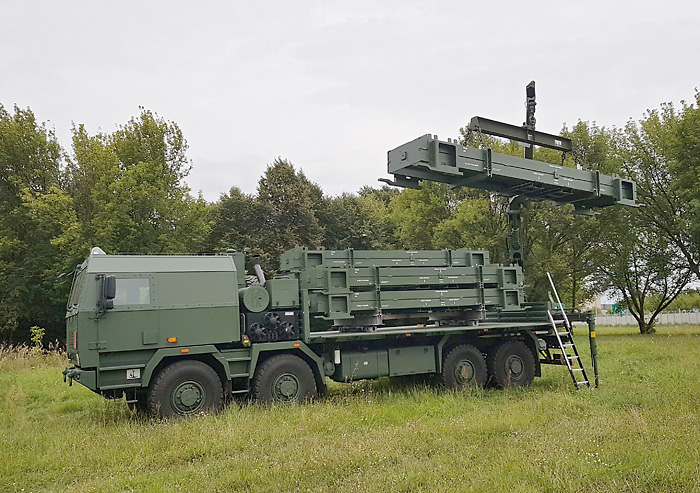 Рис. 4. Транспортно-заряжающая машина (ТЗМ) STZ на шасси Jelcz P882.57 польского ЗРК PATRIOT (без прицепа). Фото: Agencja Uzbrojenia (Агентство по вооружениям).