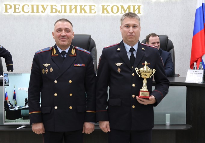За наиболее высокую эффективность оперативно-служебной деятельности среди территориальных органов МВД России на районном уровне в Республике Коми по результатам итоговой оценки за 2024 год переходящий кубок получил начальник Межмуниципального отдела МВД России «Сысольский» Александр Першин.