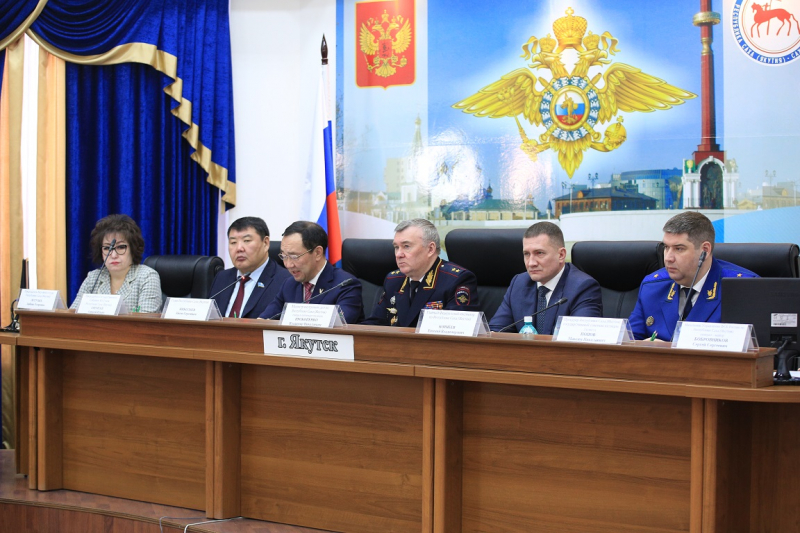 Сегодня в МВД по Республике Саха (Якутия) под председательством Министра внутренних дел республики генерал-лейтенанта полиции Владимира Прокопенко состоялось расширенное заседание коллегии на котором подведены итоги оперативно-служебной деятельности министерства и территориальных органов на районном уровне за истекший период. В работе коллегии приняли участие Глава республики Айсен Николаев, Председатель Государственного Собрания (Ил Тумэн) Республики Саха (Якутия) Алексей Еремеев, Главный Федеральный инспектор по Республике Саха (Якутия) Евгений Корнеев, Прокурор Республики Саха (Якутия) государственный советник юстиции 3 класса Максим Попов, Председатель Верховного суда Республики Саха (Якутия) Любовь Летучих, начальник УФСБ России по Республике Саха (Якутия) генерал-майор Сергей Бобровников, руководитель СУ СК России по Республике Саха (Якутия) полковник юстиции Виталий Кондратенко, начальник УФСИН России по Республике Саха (Якутия) полковник внутренней службы Василий Седрисев, врио начальника УФСВНГ России по Республике Саха (Якутия) полковник полиции Сергей Шапошников, Уполномоченный по правам человека в Республике Саха (Якутия) Сардана Гурьева, врио руководителя Управления Федеральной службы судебных приставов по Республике Саха (Якутия) - главного судебного пристава майор внутренней службы Александр Рогалев, председатель Общественного совета при МВД по Республике Саха (Якутия) Иван Луцкан.