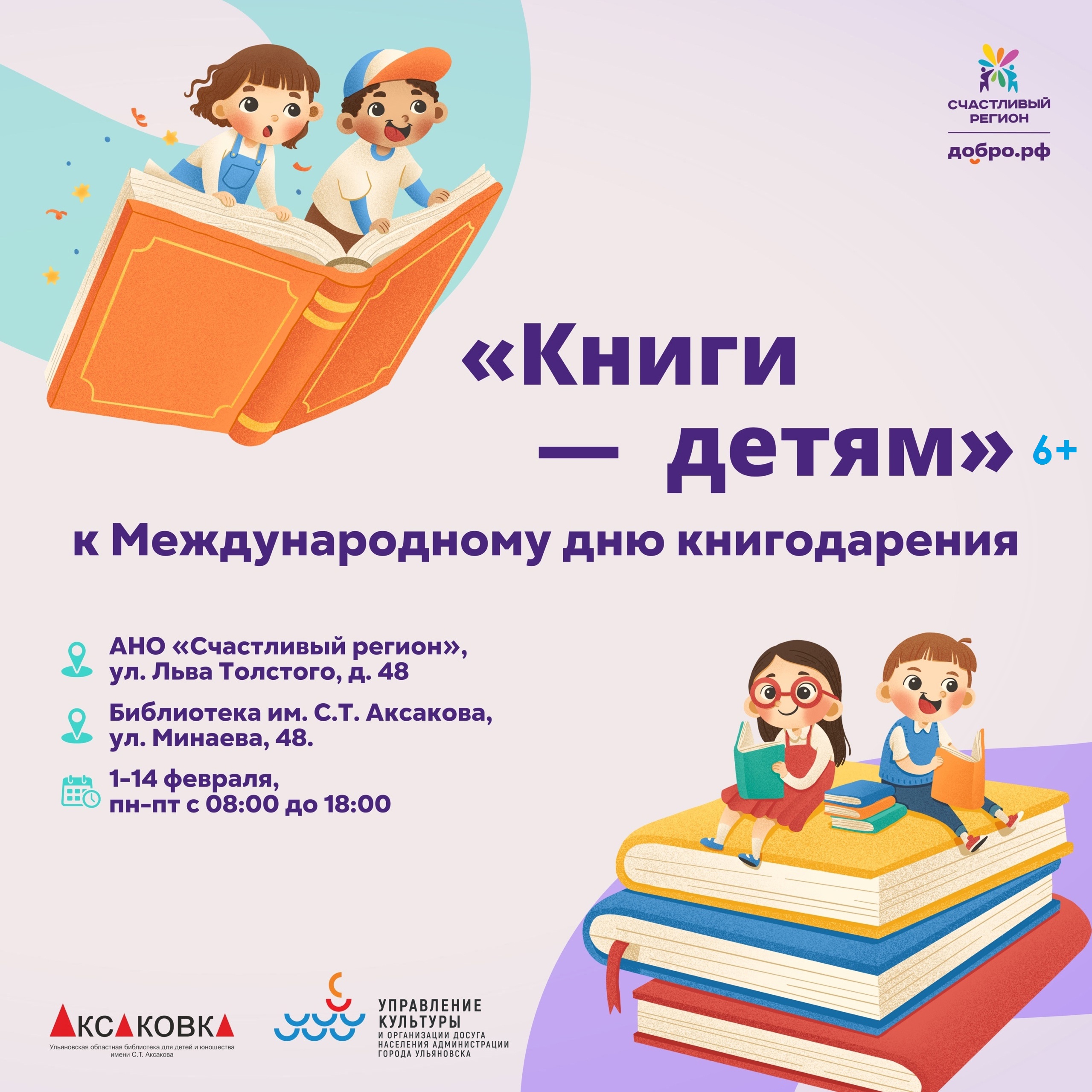 В Ульяновске стартует благотворительный фестиваль, приуроченный к Международному дню книгодарения. С 1 по 14 февраля в библиотеке им. С.Т. Аксакова и ресурсном центре «Счастливый регион» собирают новые детские книги для ребят из Луганской Народной Республики. В дар принимаются издания разных жанров — от сказок до энциклопедий.